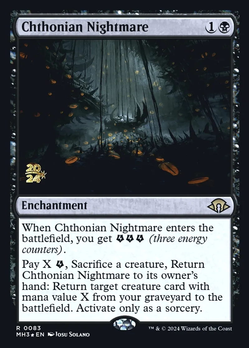 | Oracle Text | When Chthonian Nightmare enters, you get {{e}}{{e}}{{e}} (three energy counters).