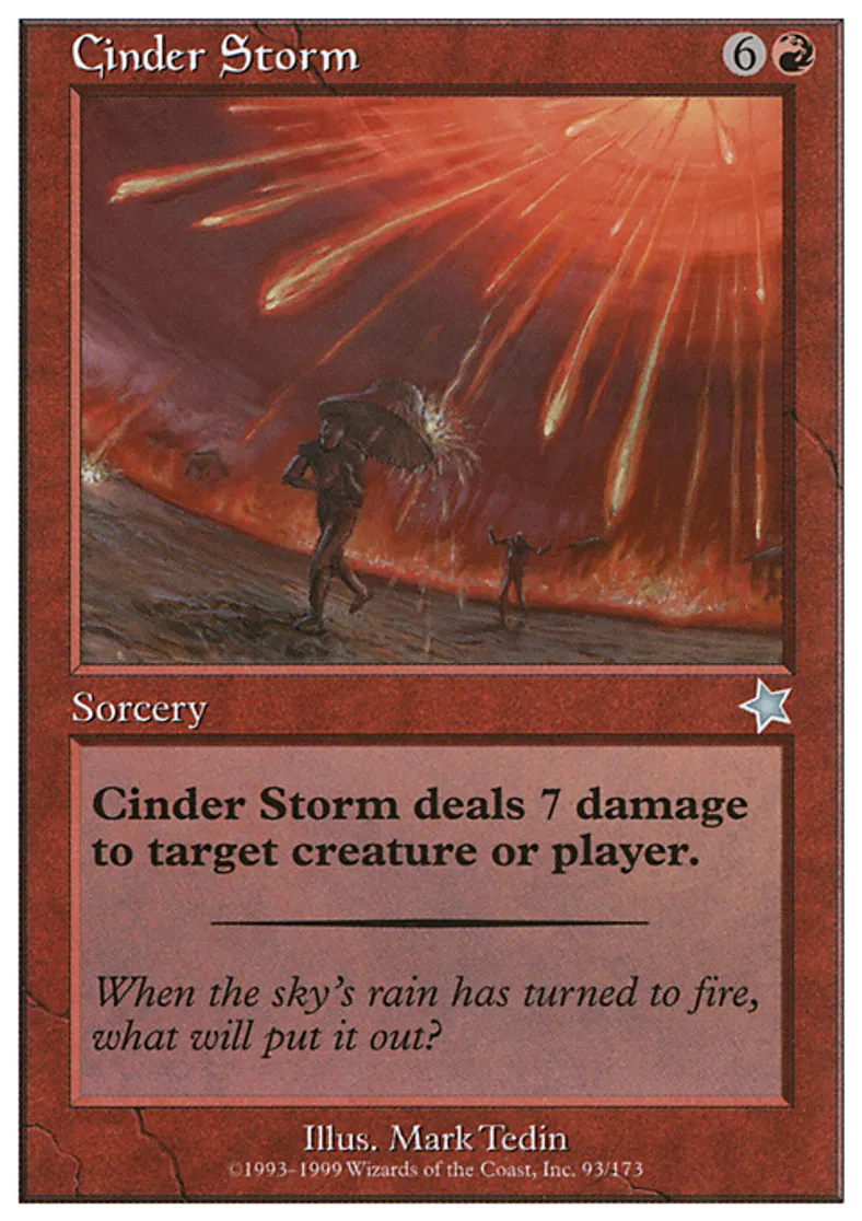 Magic: the Gathering (mtg) Uncommon Sorcery Cinder Storm from Starter 1999 (S99) last updated 2026-02-24 15:49:36