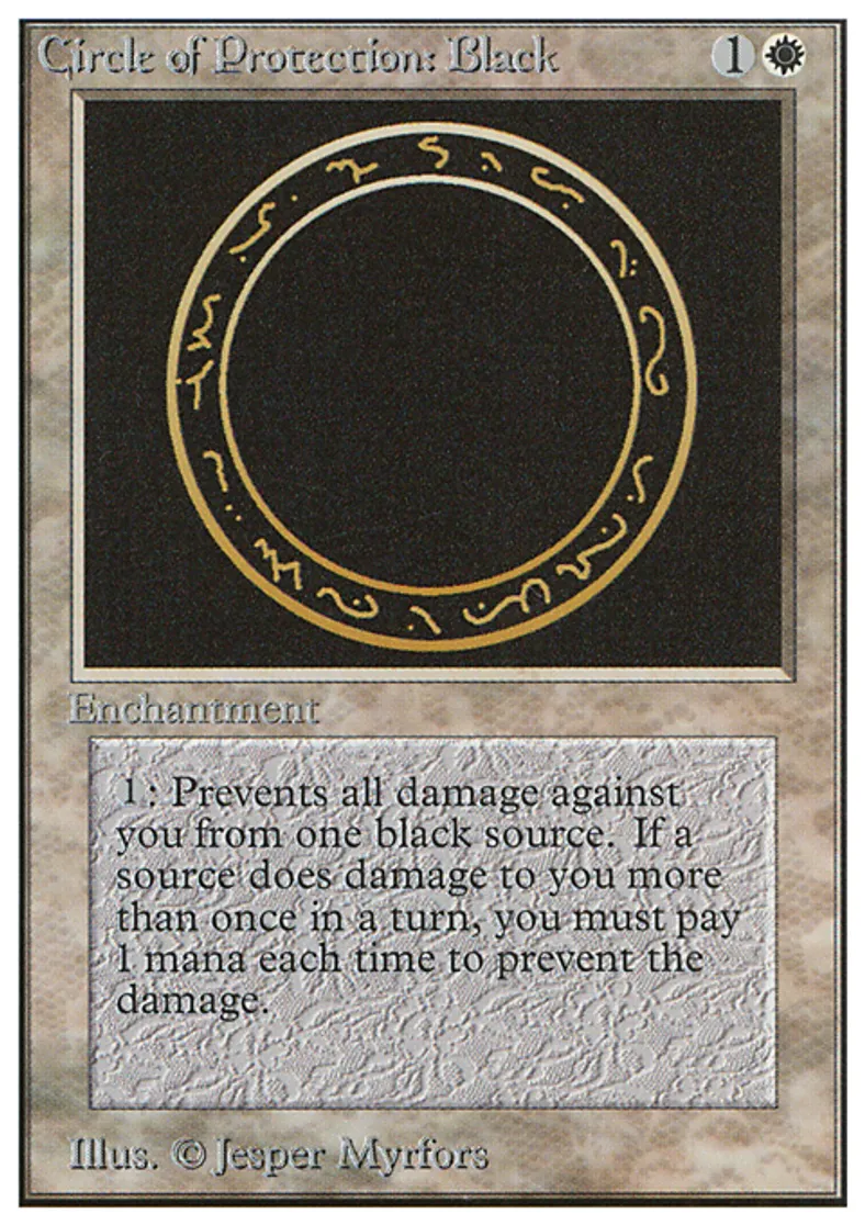 Magic: the Gathering (mtg) Common Enchantment Circle of Protection: Black from Unlimited Edition (2ED) last updated 2026-02-09 15:11:32
