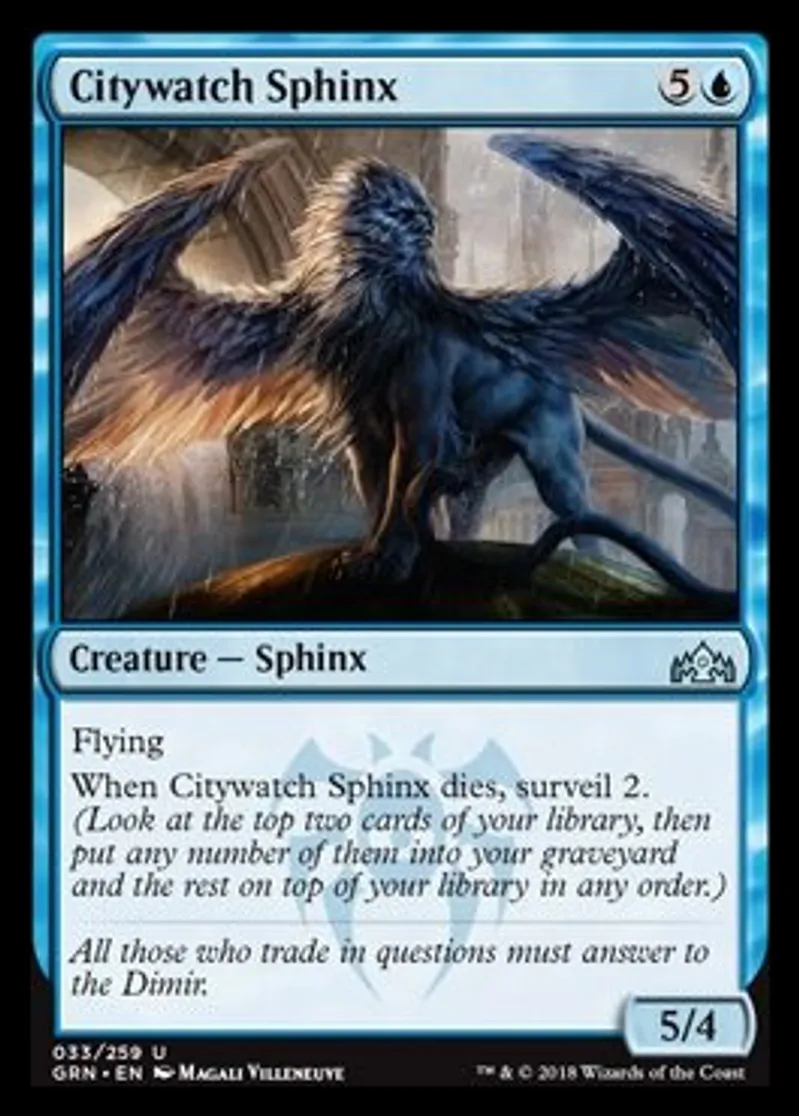 Magic: the Gathering (mtg) Uncommon Creature - Sphinx Citywatch Sphinx from Guilds of Ravnica (GRN) last updated 2026-02-21 16:54:02