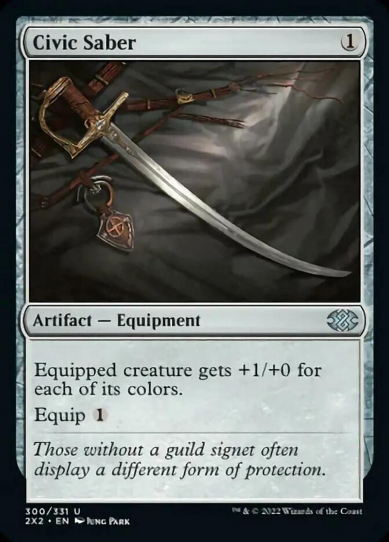 Magic: the Gathering (mtg) uncommon Artifact — Equipment Civic Saber from Double Masters 2022 (2x2) last updated 2026-02-21 16:09:02