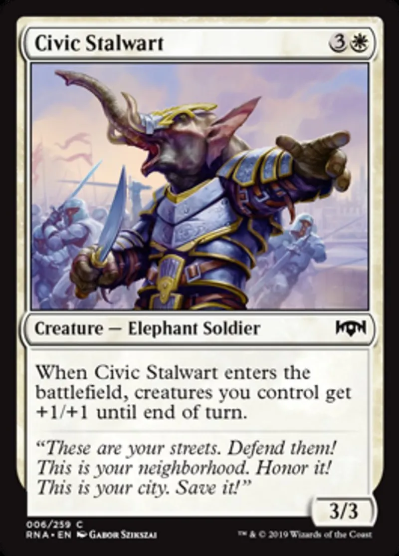 Magic: the Gathering (mtg) Common Creature — Elephant Soldier Civic Stalwart from Ravnica Allegiance (RNA) last updated 2026-02-21 16:56:02