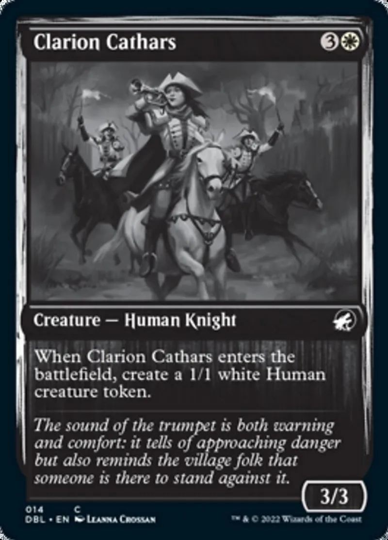 Clarion Cathars is a common in the set Innistrad: Double Feature.