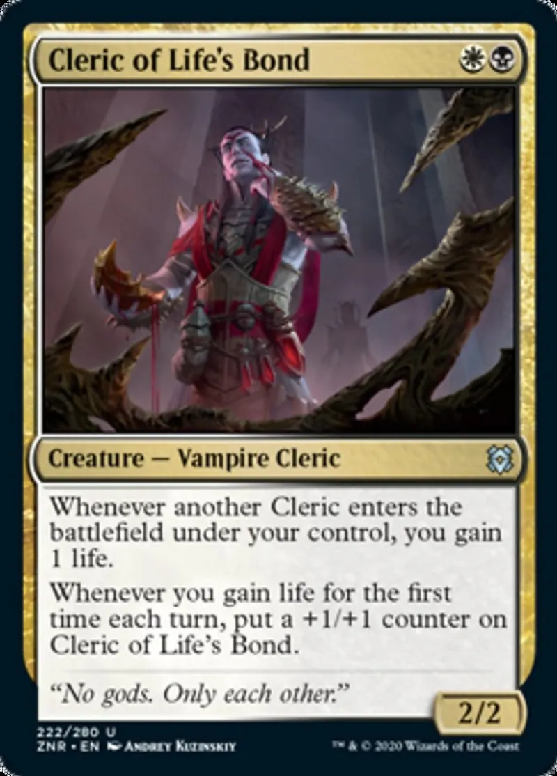 Magic: the Gathering (mtg) uncommon Creature — Vampire Cleric Cleric of Life's Bond from Zendikar Rising (znr) last updated 2026-02-21 16:29:36
