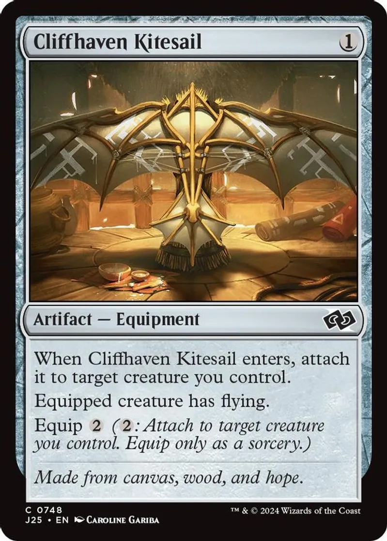Magic: the Gathering (mtg) Common artifact — equipment Cliffhaven Kitesail from Foundations Jumpstart (J25) last updated 2026-02-21 15:33:02