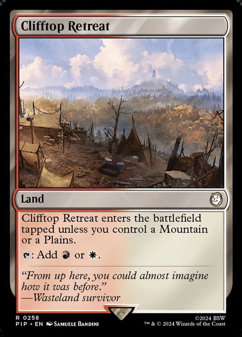 Magic: the Gathering (mtg) rare Land Clifftop Retreat from Universes Beyond: Fallout (pip) last updated 2026-02-21 15:58:02