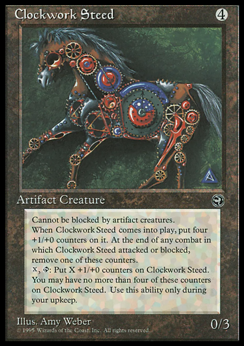 Magic: the Gathering (mtg) Common Artifact Creature - Horse Clockwork Steed from Homelands (HML) last updated 2026-02-21 17:15:07
