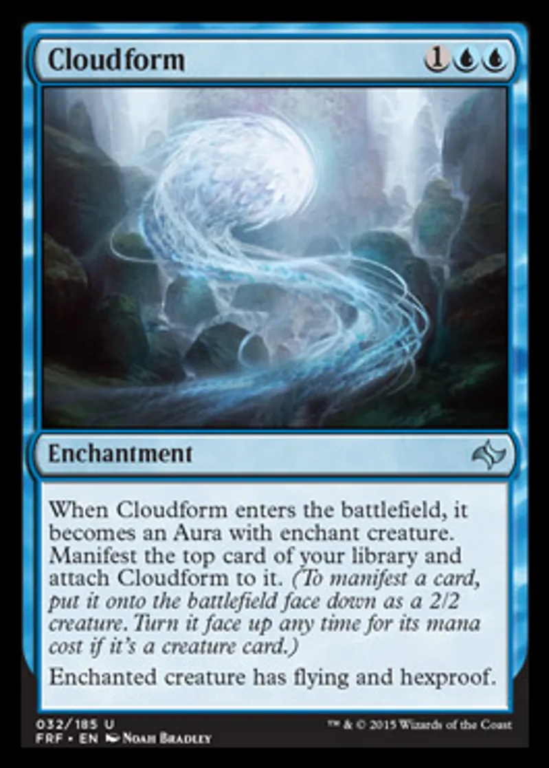 | Oracle Text | When Cloudform enters the battlefield, it becomes an Aura with enchant creature. Manifest the top card of your library and attach Cloudform to it. (To manifest a card, put it onto the battlefield face down as a 2/2 creature. Turn it face up any time for its mana cost if it's a creature card.)