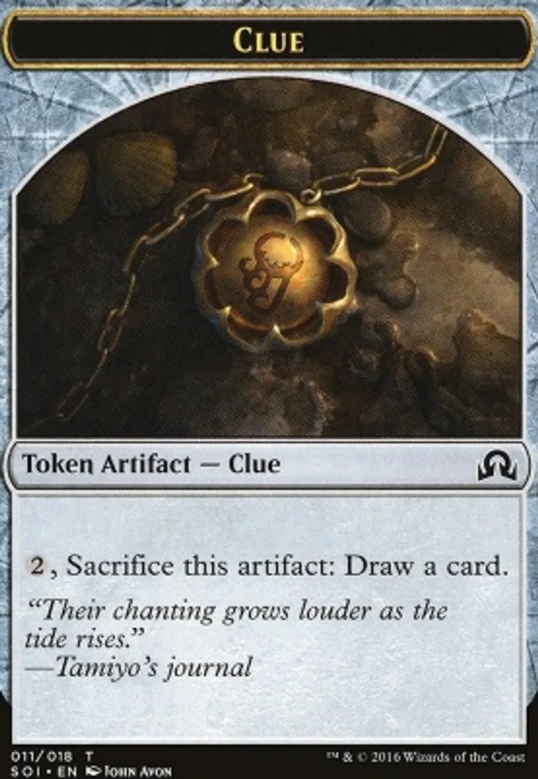 Magic: the Gathering (mtg) Token Token Artifact - Clue Clue Token from Shadow over Innistrad Tokens (TSOI) last updated 2026-02-21 16:58:06