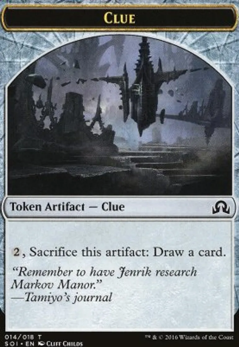Magic: the Gathering (mtg) Token Token Artifact - Clue Clue Token from Shadow over Innistrad Tokens (TSOI) last updated 2026-01-24 15:52:32