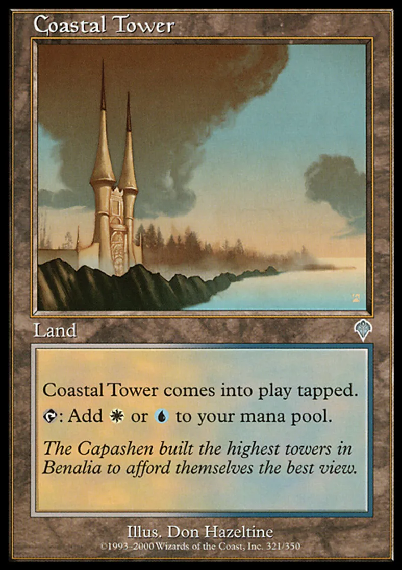 | Oracle Text | Coastal Tower enters the battlefield tapped. {{t}}: Add {{w}} or {{u}} to your mana pool. | ||