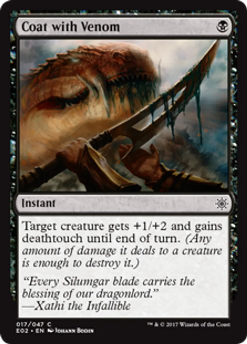Magic: the Gathering (mtg) Common Instant Coat with Venom from Explorers of Ixalan (E02) last updated 2026-02-21 16:49:02