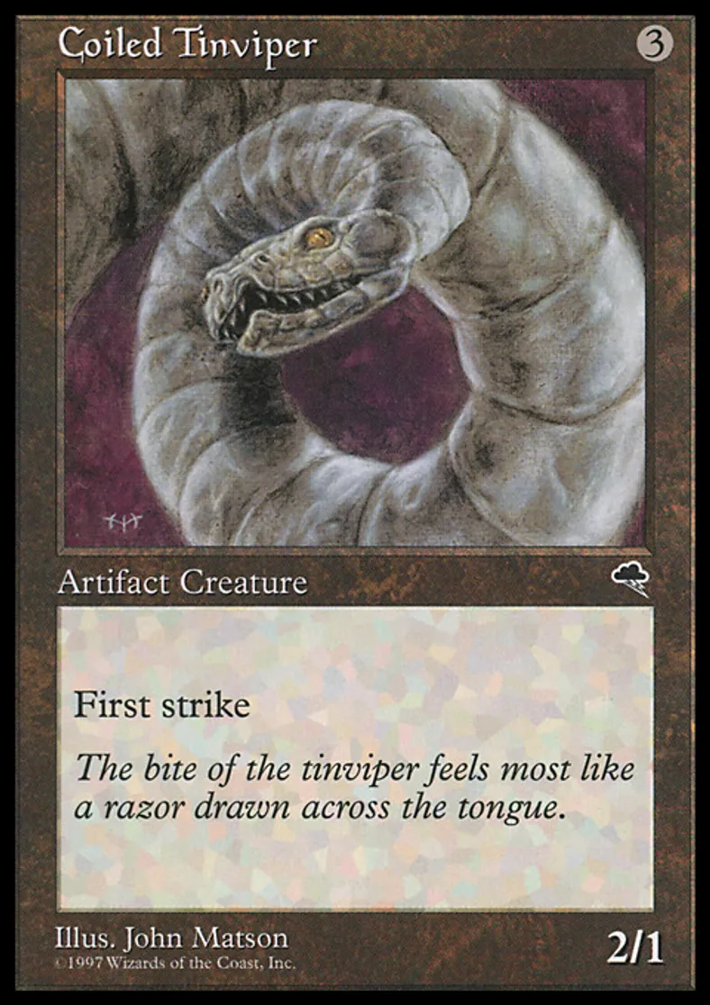 Coiled Tinviper is a Common in the set Tempest.