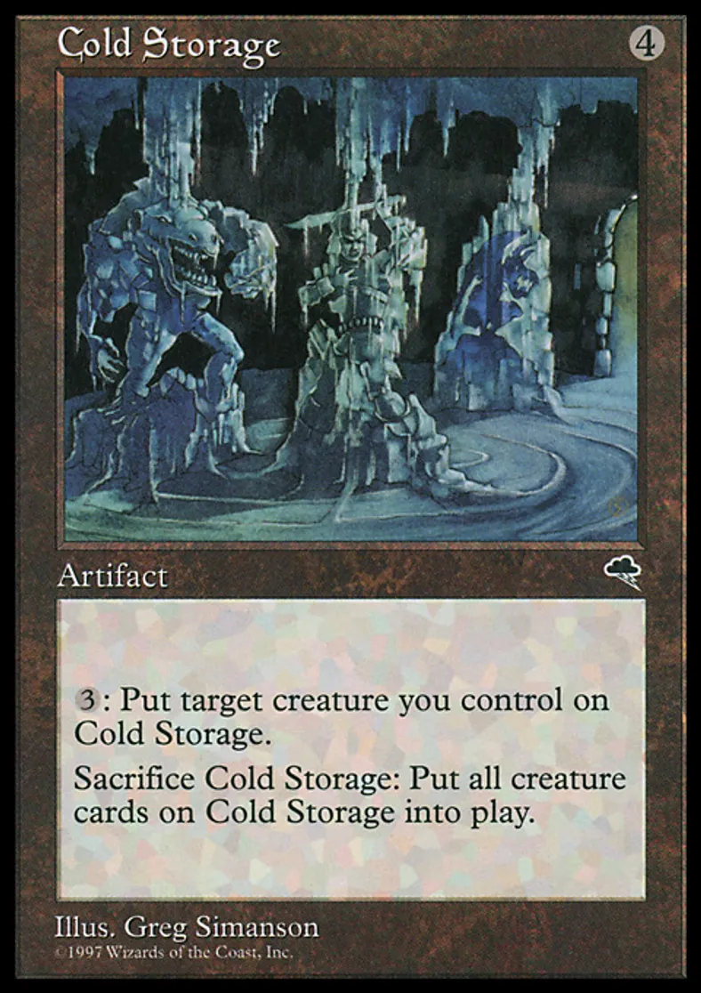 | Oracle Text | {{3}}: Exile target creature you control. Sacrifice Cold Storage: Return each creature card exiled with Cold Storage to the battlefield under your control. | ||