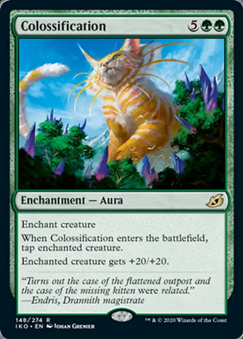 Magic: the Gathering (mtg) rare Enchantment — Aura Colossification from Ikoria: Lair of Behemoths (iko) last updated 2026-02-21 16:24:02