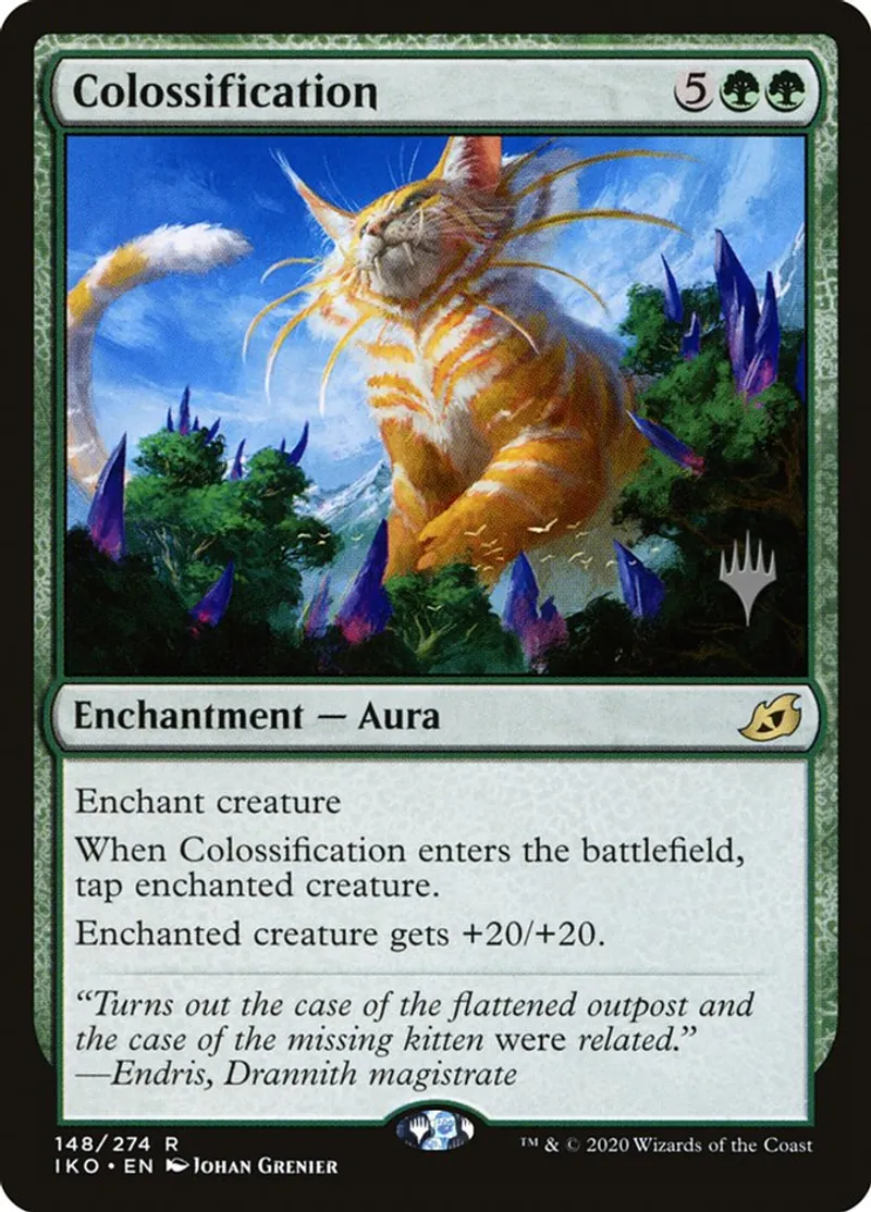 Magic: the Gathering (mtg) Rare Enchantment - Aura Colossification from Promo Pack: Ikoria (pIKO) last updated 2026-02-24 15:28:36