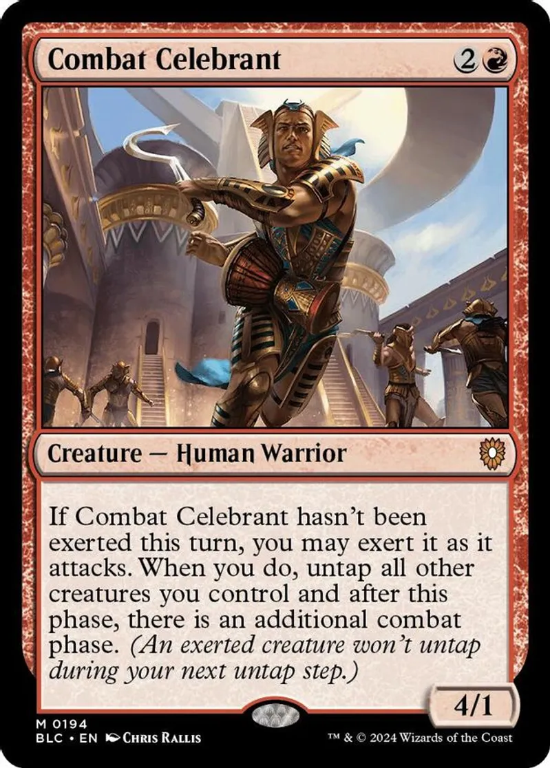 Magic: the Gathering (mtg) Mythic Rare creature — human warrior Combat Celebrant from Bloomburrow Commander (BLC) last updated 2026-01-31 17:24:02