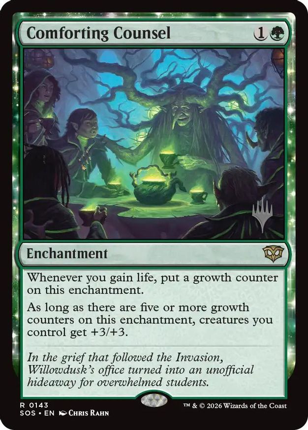 Magic: the Gathering (mtg) Rare enchantment Comforting Counsel from Promo Pack: Secrets of Strixhaven (PPSOS) last updated 2026-04-17 21:11:01