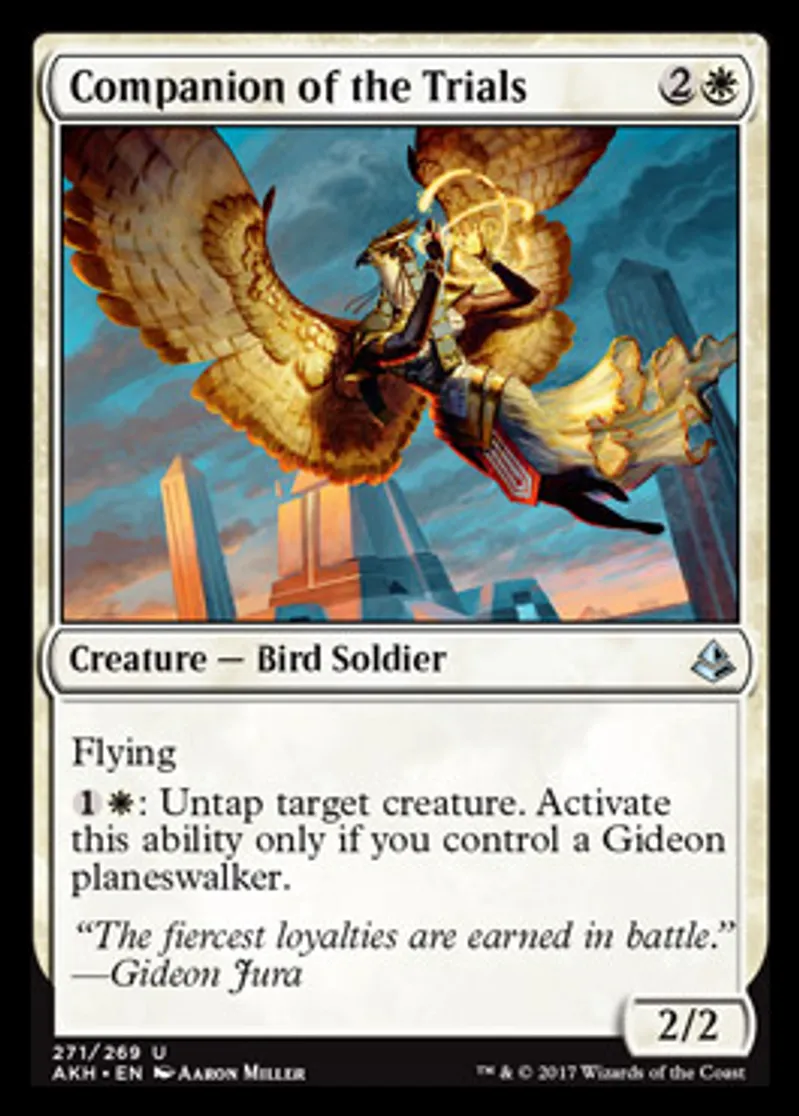 Magic: the Gathering (mtg) Uncommon Creature - Bird Soldier Companion of the Trials from Amonkhet (AKH) last updated 2026-02-21 16:45:32