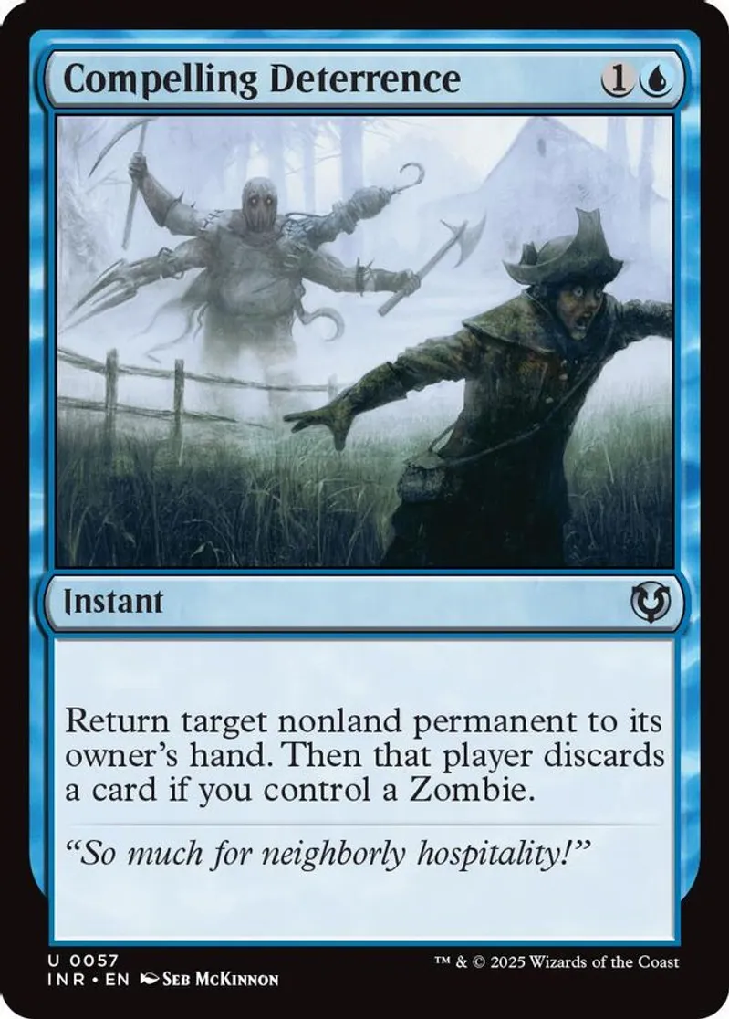 Magic: the Gathering (mtg) Uncommon instant Compelling Deterrence from Innistrad Remastered (INR) last updated 2026-02-21 15:35:02