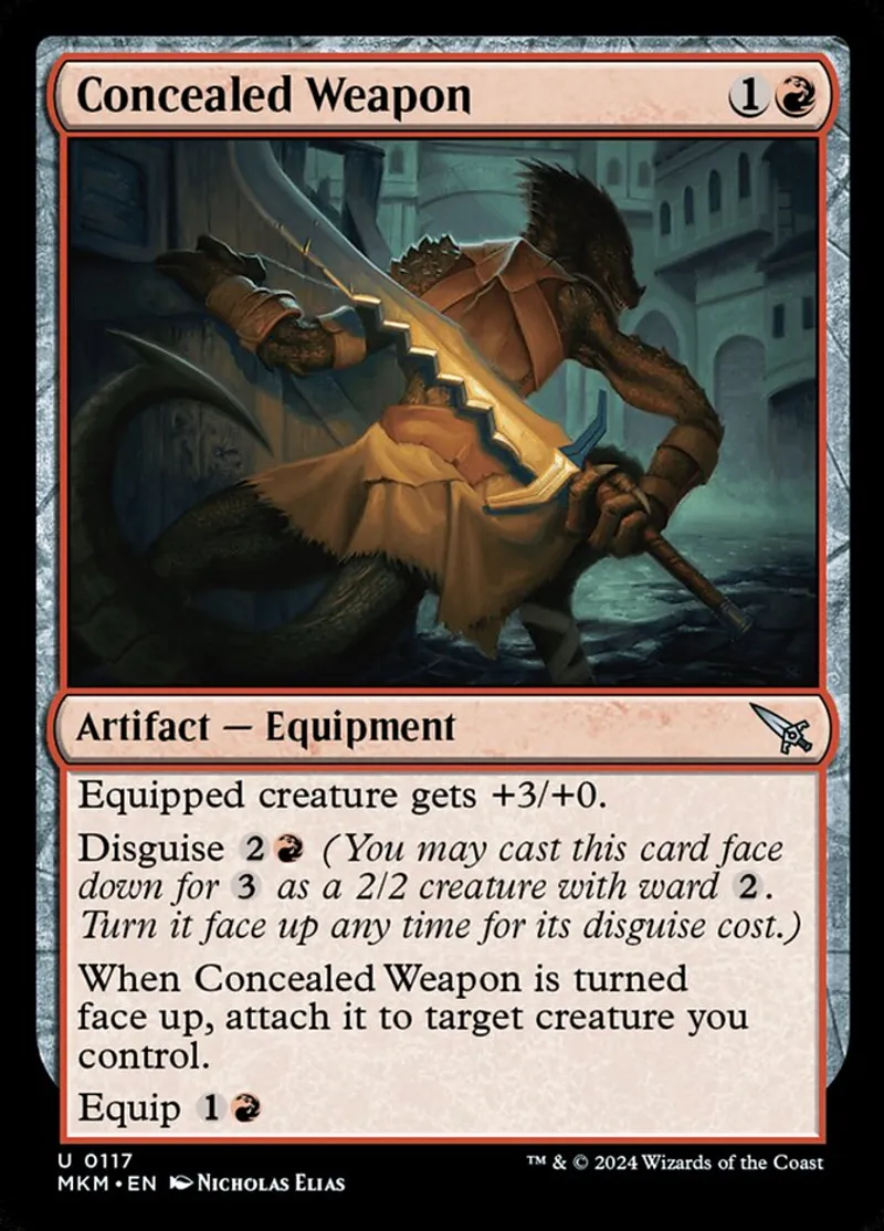 Magic: the Gathering (mtg) uncommon Artifact — Equipment Concealed Weapon from Murders at Karlov Manor (mkm) last updated 2025-12-13 15:53:32