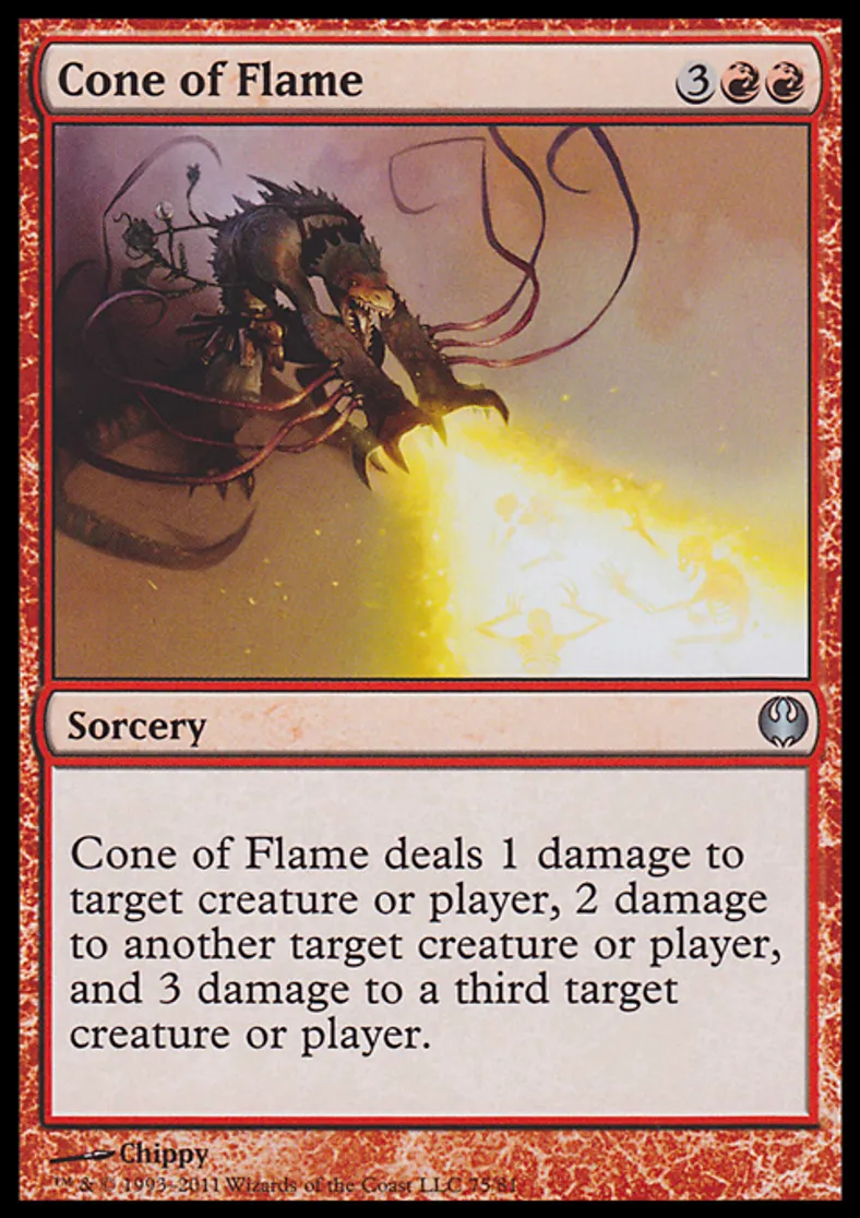 | Oracle Text | Cone of Flame deals 1 damage to target creature or player, 2 damage to another target creature or player, and 3 damage to a third target creature or player. | ||