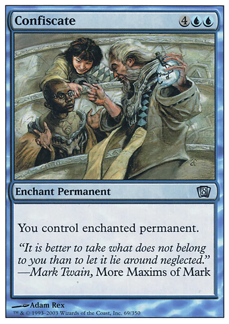 Magic: the Gathering (mtg) Uncommon Enchantment - Aura Confiscate from Eighth Edition (8ED) last updated 2026-02-24 15:51:36