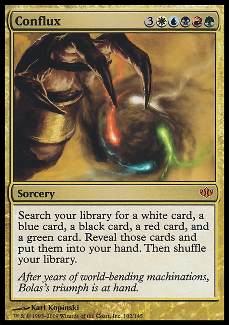 | Oracle Text | Search your library for a white card, a blue card, a black card, a red card, and a green card. Reveal those cards and put them into your hand. Then shuffle your library. | ||