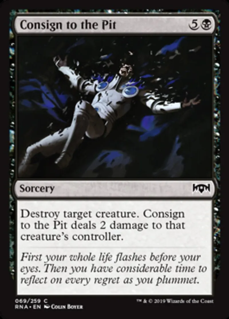 | Oracle Text | Destroy target creature. Consign to the Pit deals 2 damage to that creature's controller. | ||