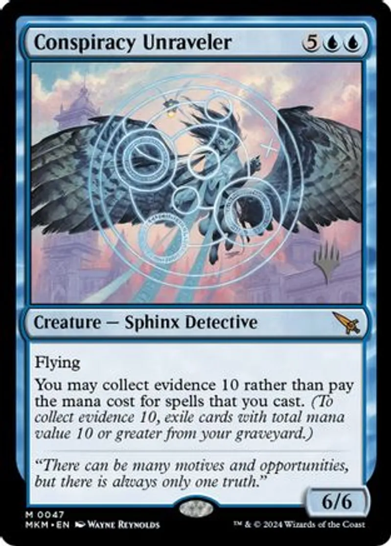 Magic: the Gathering (mtg) Mythic Rare Creature — Sphinx Detective Conspiracy Unraveler from Promo Pack: Murders at Karlov Manor (PMKM) last updated 2026-02-21 15:57:02