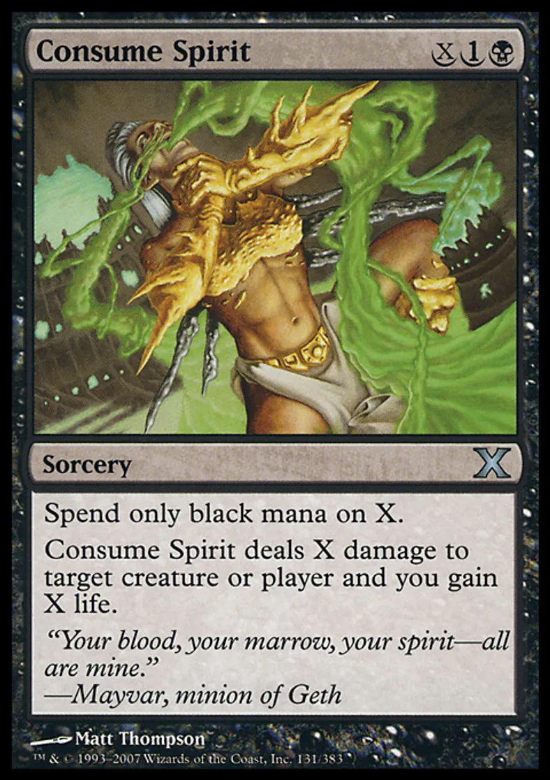 | Oracle Text | Spend only black mana on X. Consume Spirit deals X damage to target creature or player and you gain X life. | ||