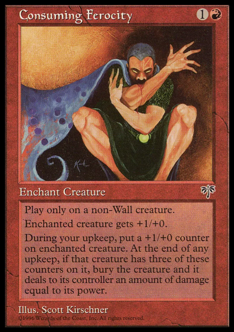 Magic: the Gathering (mtg) Uncommon Enchantment - Aura Consuming Ferocity from Mirage (MIR) last updated 2026-02-21 17:12:02