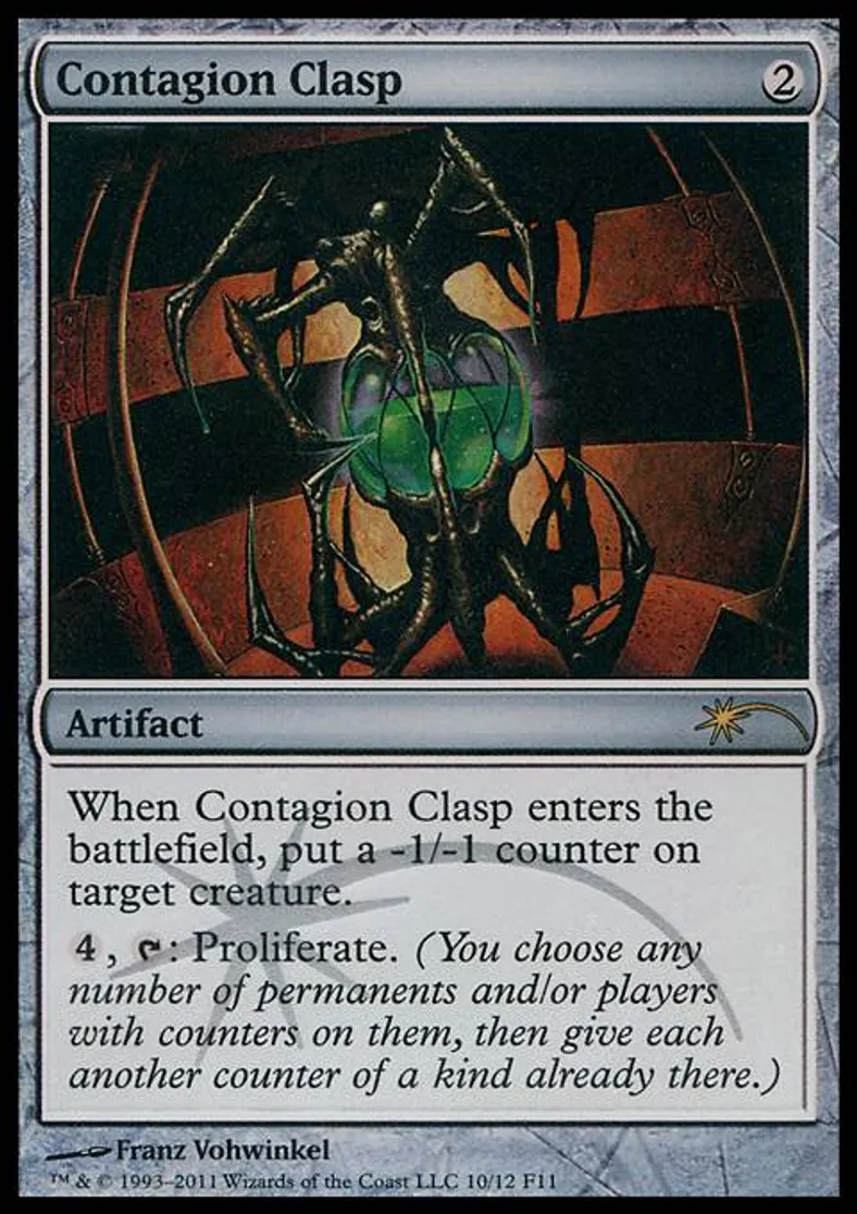 Magic: the Gathering (mtg) Special Artifact Contagion Clasp from FNM Promos (pFNM) last updated 2026-02-25 14:37:07