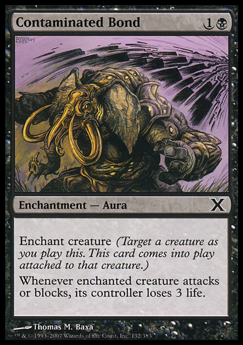 Magic: the Gathering (mtg) Common Enchantment - Aura Contaminated Bond from Tenth Edition (10E) last updated 2026-02-21 17:44:02