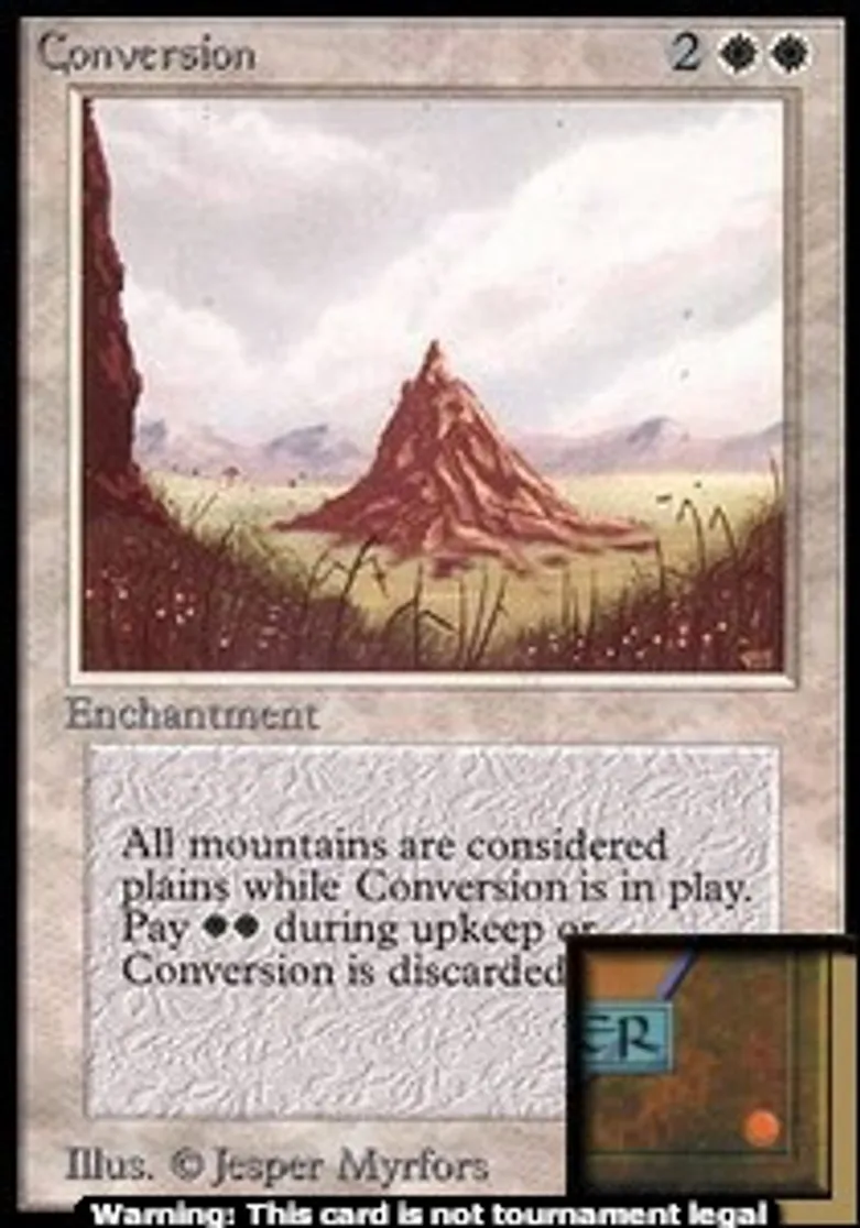 | Oracle Text | At the beginning of your upkeep, sacrifice Conversion unless you pay {{w}}{{w}}. All Mountains are Plains. | ||