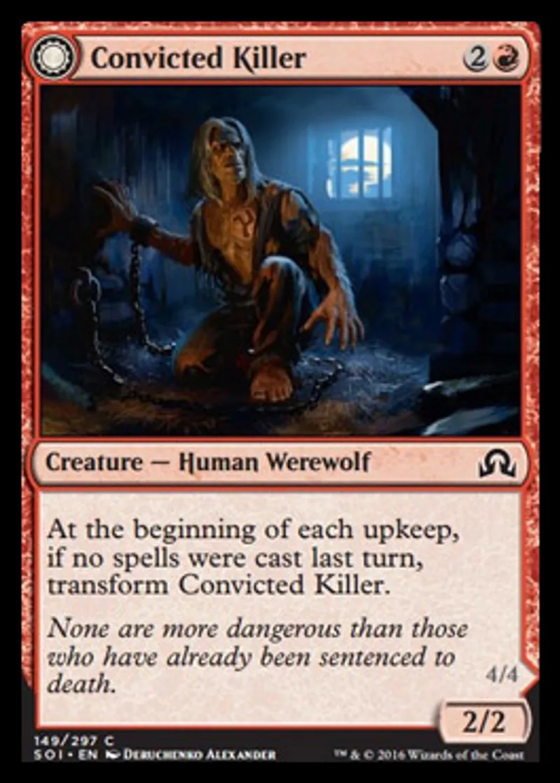 | Oracle Text | At the beginning of each upkeep, if no spells were cast last turn, transform Convicted Killer. | ||