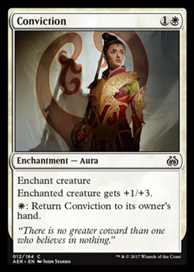 Magic: the Gathering (mtg) Common Enchantment - Aura Conviction from Aether Revolt (AER) last updated 2026-02-21 17:27:36