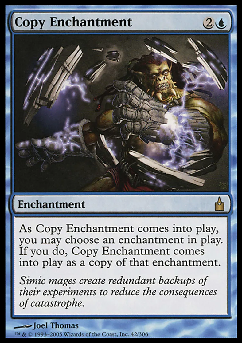 | Oracle Text | You may have Copy Enchantment enter the battlefield as a copy of any enchantment on the battlefield. | ||
