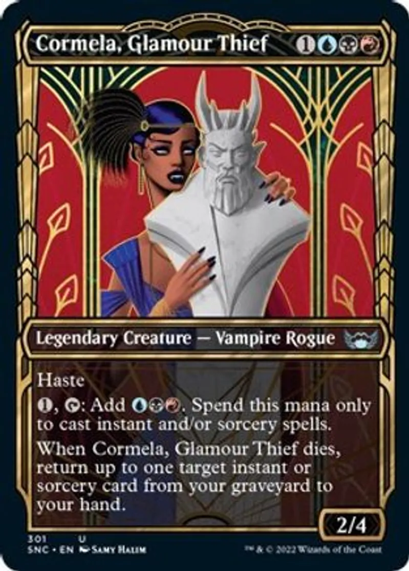 Magic: the Gathering (mtg) Uncommon Legendary Creature — Vampire Rogue Cormela, Glamour Thief from Streets of New Capenna (SNC) last updated 2026-02-21 16:05:33