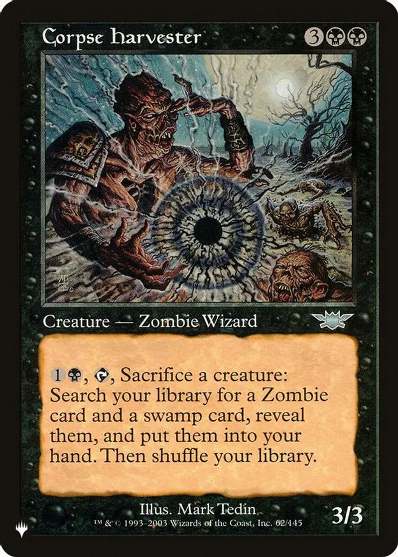 Magic: the Gathering (mtg) Uncommon creature — zombie wizard Corpse Harvester from The List Reprints (PLIST) last updated 2026-02-25 15:19:02