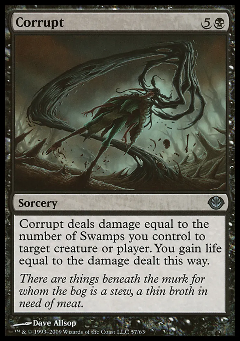 | Oracle Text | Corrupt deals damage equal to the number of Swamps you control to target creature or player. You gain life equal to the damage dealt this way. | ||