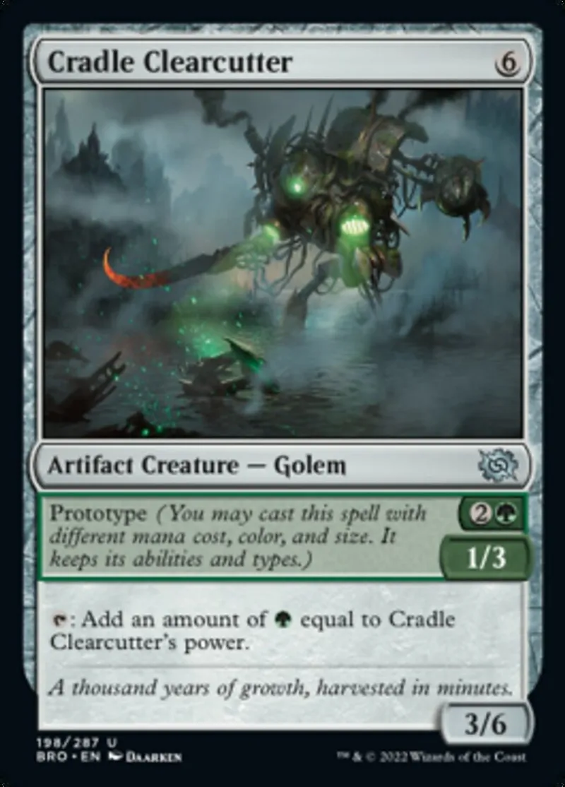 Magic: the Gathering (mtg) uncommon Artifact Creature — Golem Cradle Clearcutter from The Brothers' War (bro) last updated 2026-02-21 16:15:06