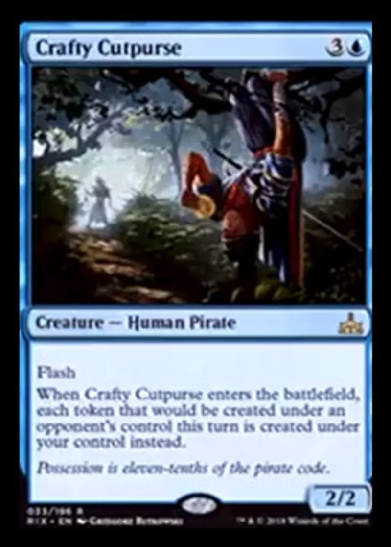 | Oracle Text | Flash When Crafty Cutpurse enters the battlefield, each token that would be created under an opponent's control this turn is created under your control instead. | ||