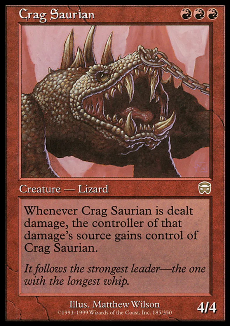 | Oracle Text | Whenever a source deals damage to Crag Saurian, that source's controller gains control of Crag Saurian. | ||