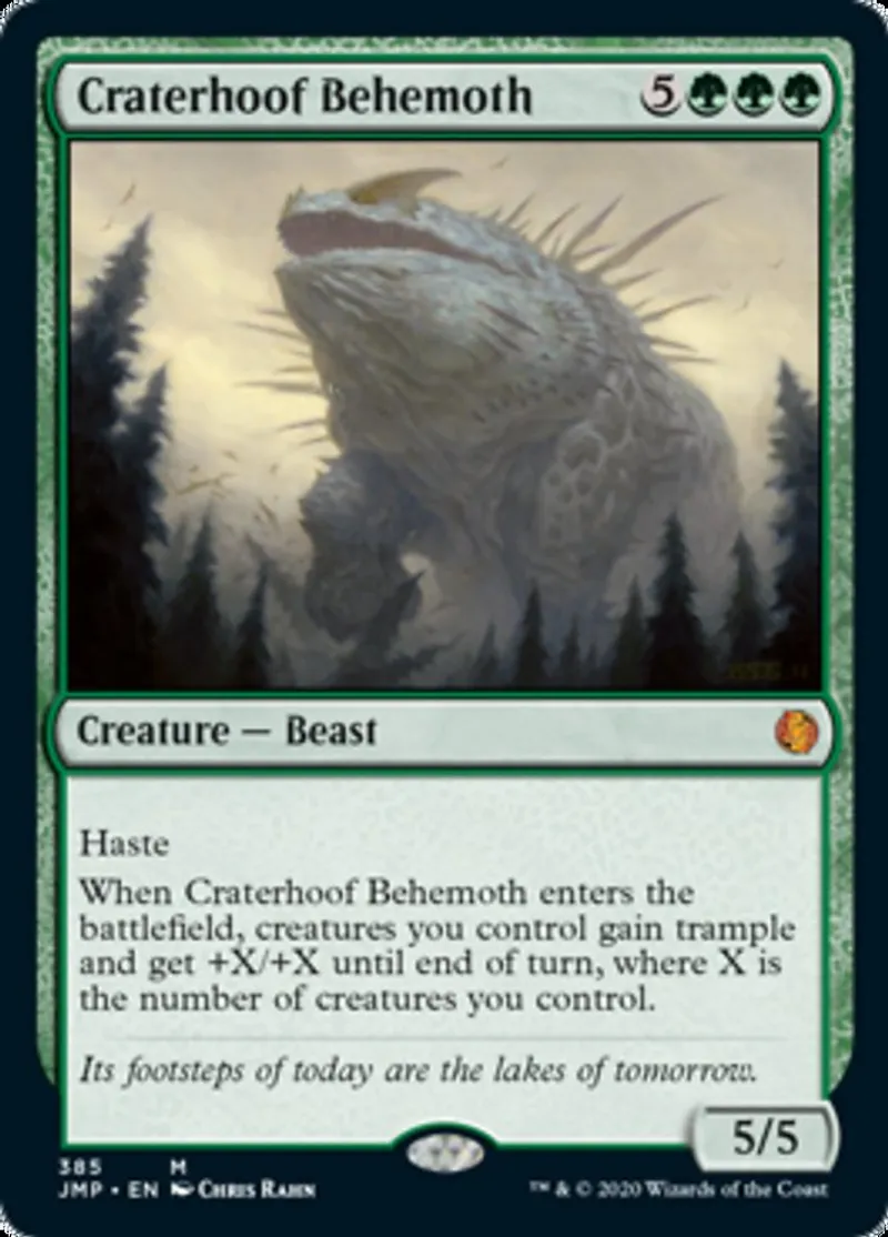 Craterhoof Behemoth is a mythic in the set Jumpstart.