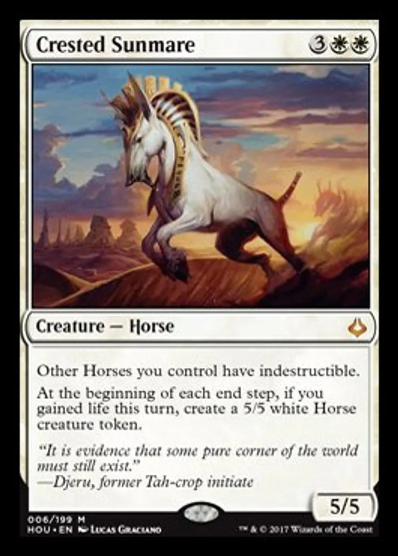 Magic: the Gathering (mtg) Mythic Rare Creature - Horse Crested Sunmare from Hour Of Devastation (HOU) last updated 2026-02-24 14:38:37