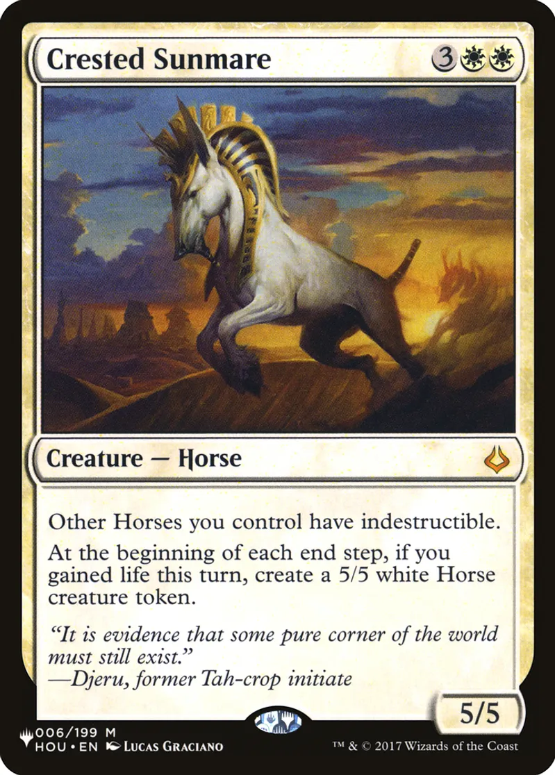 Magic: the Gathering (mtg) Mythic Rare Creature — Horse Crested Sunmare from The List (PLIST) last updated 2026-02-24 14:32:36