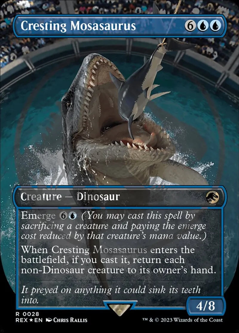 When Cresting Mosasaurus enters the battlefield, if you cast it, return each non-Dinosaur creature to its owner's hand. | ||
