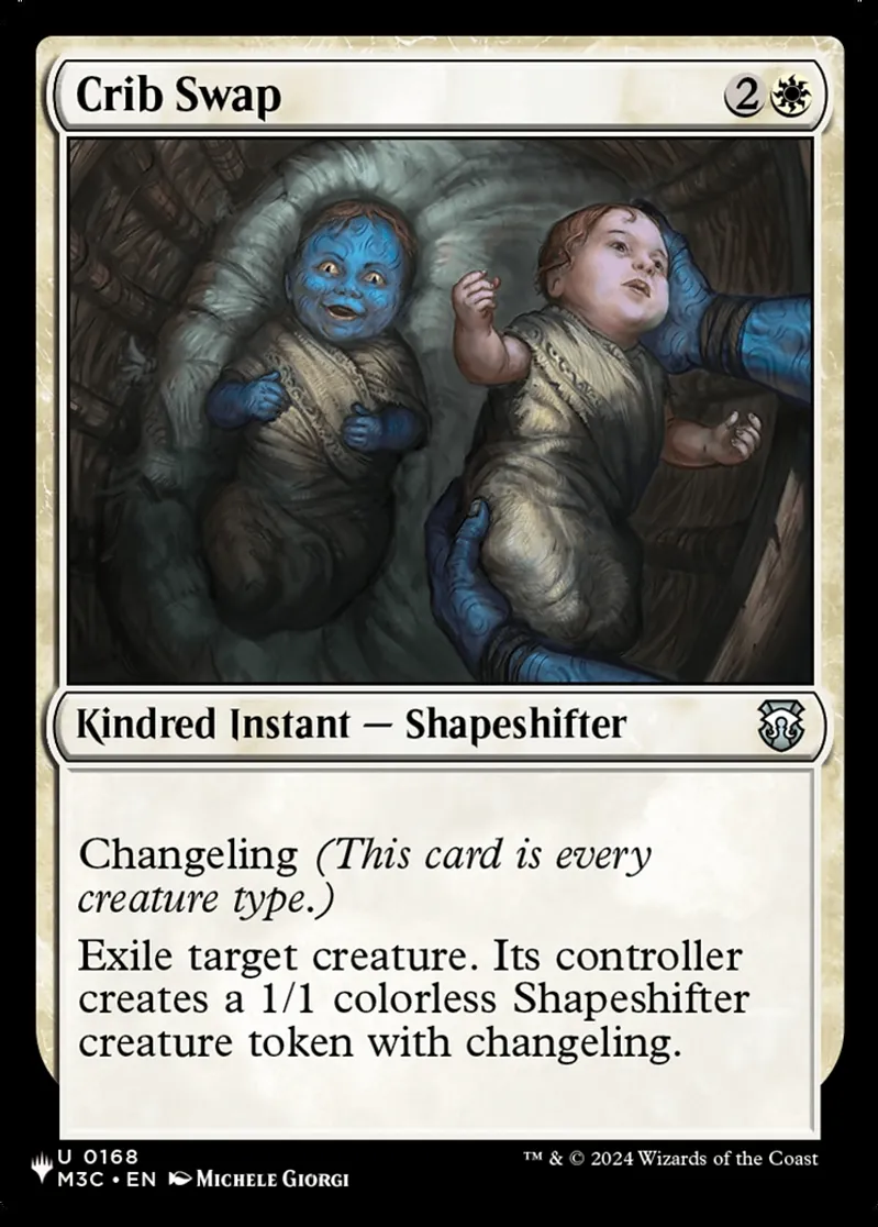 Magic: the Gathering (mtg) Uncommon Kindred Instant — Shapeshifter Crib Swap from The List Reprints (PLIST) last updated 2025-12-20 15:08:06