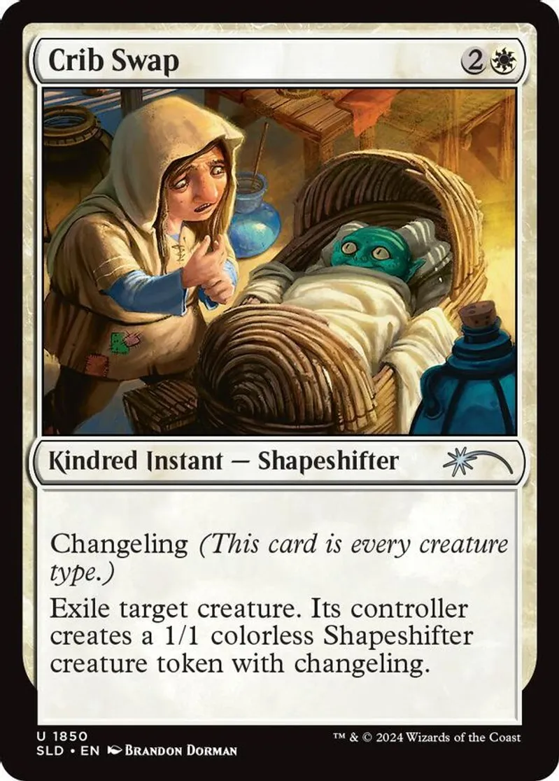 Magic: the Gathering (mtg) Uncommon kindred instant — shapeshifter Crib Swap from Secret Lair Drop Series (SLD) last updated 2026-02-24 15:19:32